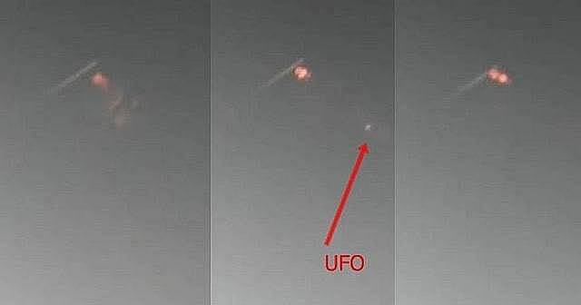 Una mirada más de cerca al metraje muestra un OVNI a cierta distancia del primer objeto. Aunque no estoy seguro de si los objetos brillantes rojos son solo bengalas o si el OVNI ha disparado algún tipo de arma de energía hacia el primer objeto volador, es notable que la posición del OVNI, que es visible en solo unos pocos cuadros del metraje, está en línea recta con los objetos rojos brillantes y el primer objeto volador.